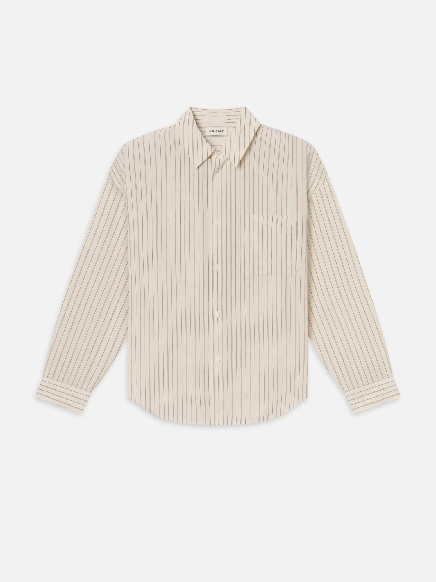 Crafted from a silky viscose blend, this long-sleeved shirt features a clean brown stripe pattern on a natural base. It’s cut for a relaxed fit with a pointed collar, chest pocket, and summary front. Lightweight and soft, it layers easily year-round.