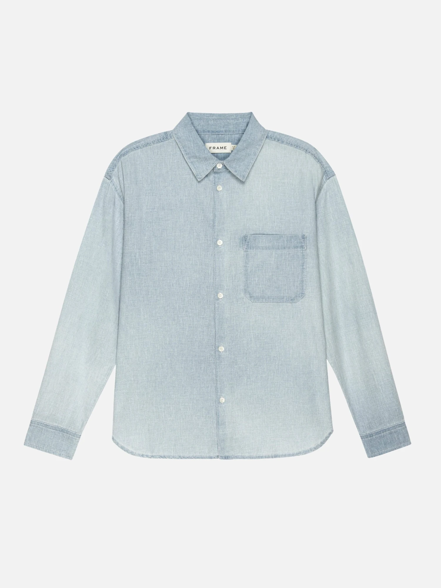 Lighten up your summer rotation with this breezy essential. Cut from a soft, breathable cotton linen blend, this camp collar shirt delivers the texture of classic chambray in a lighter shade of blue that feels fresh and effortless. The relaxed silhouette and airy weave make it ideal for warm-weather dressing — wear it solo with shorts and swimwear, or layer it over a tee for an easy, go-anywhere look.