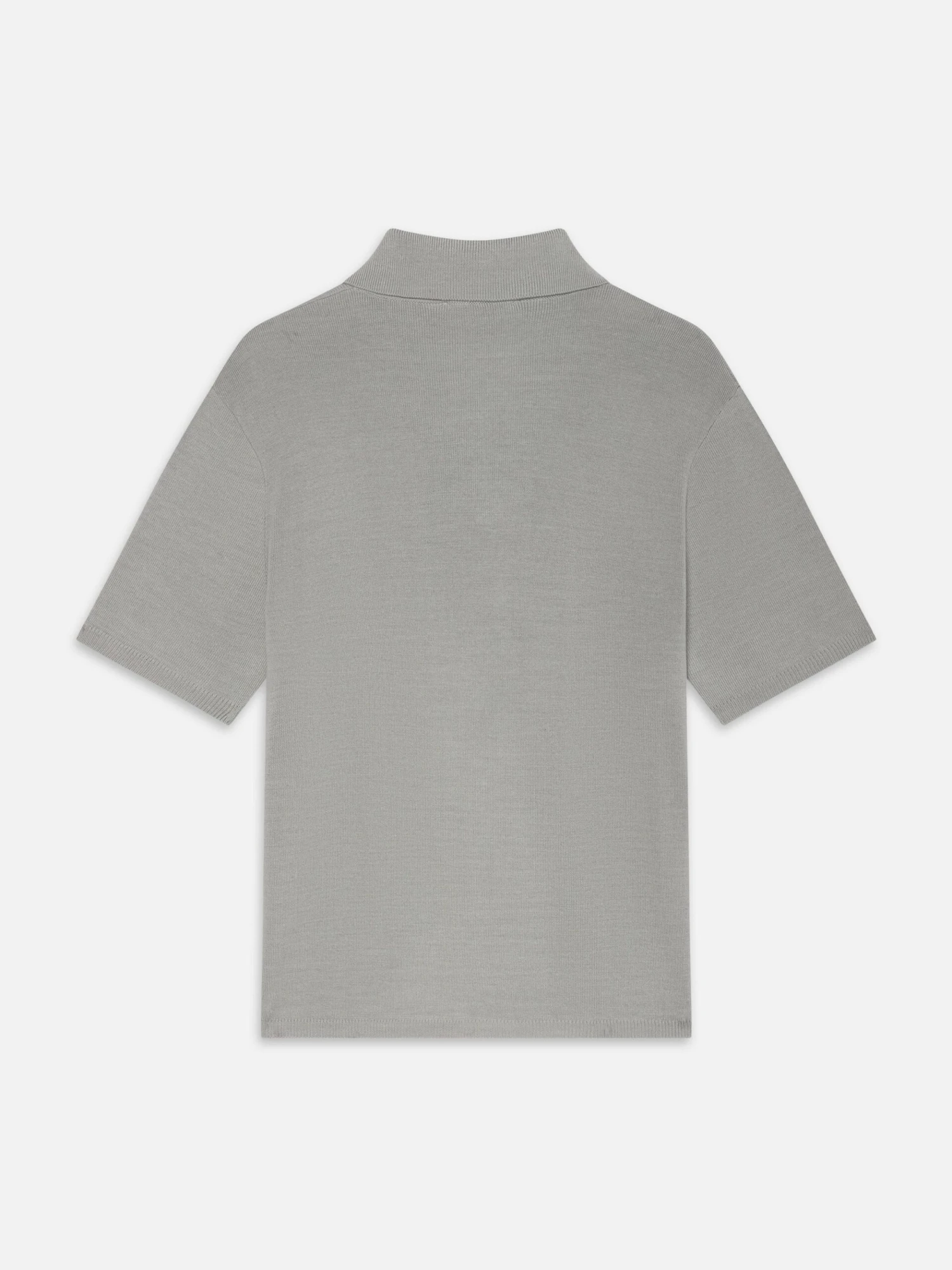 Not quite a shirt, not quite a sweater—this piece plays both sides. With a fine ribbed texture, soft silk-cotton blend, and Grey Blue hue, it’s quietly striking, whether summaryed up or left undone.
