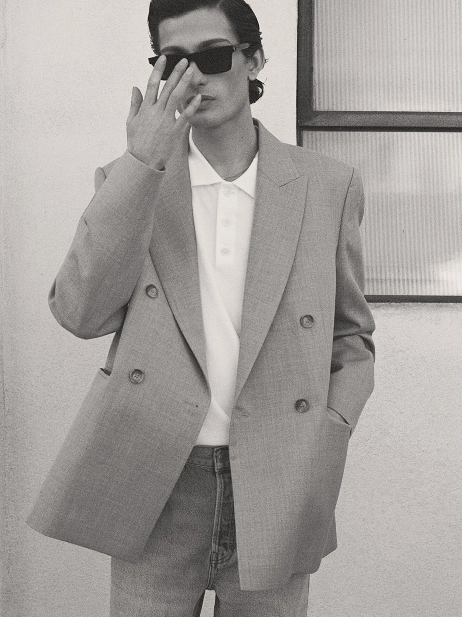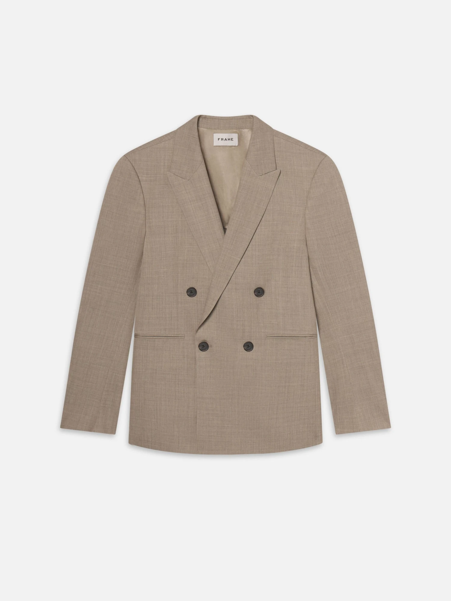 Tailored from wool with a soft drape, structured shoulders, and clean welt pockets. The sharp double-breasted blazer is finished in Vintage Khaki—a muted, modern neutral. Pair it with the matching trouser for a summer set that’s formal when you need it and effortless when you don’t.