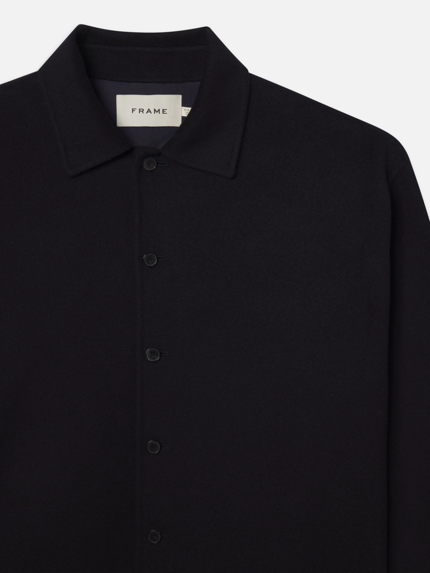 This polished shirt jacket is woven from two layers of wool to ensure an identical look and feel on the inside and outside. The result is a warm, refined layer with dropped-shoulder sleeves and monochrome ease.
