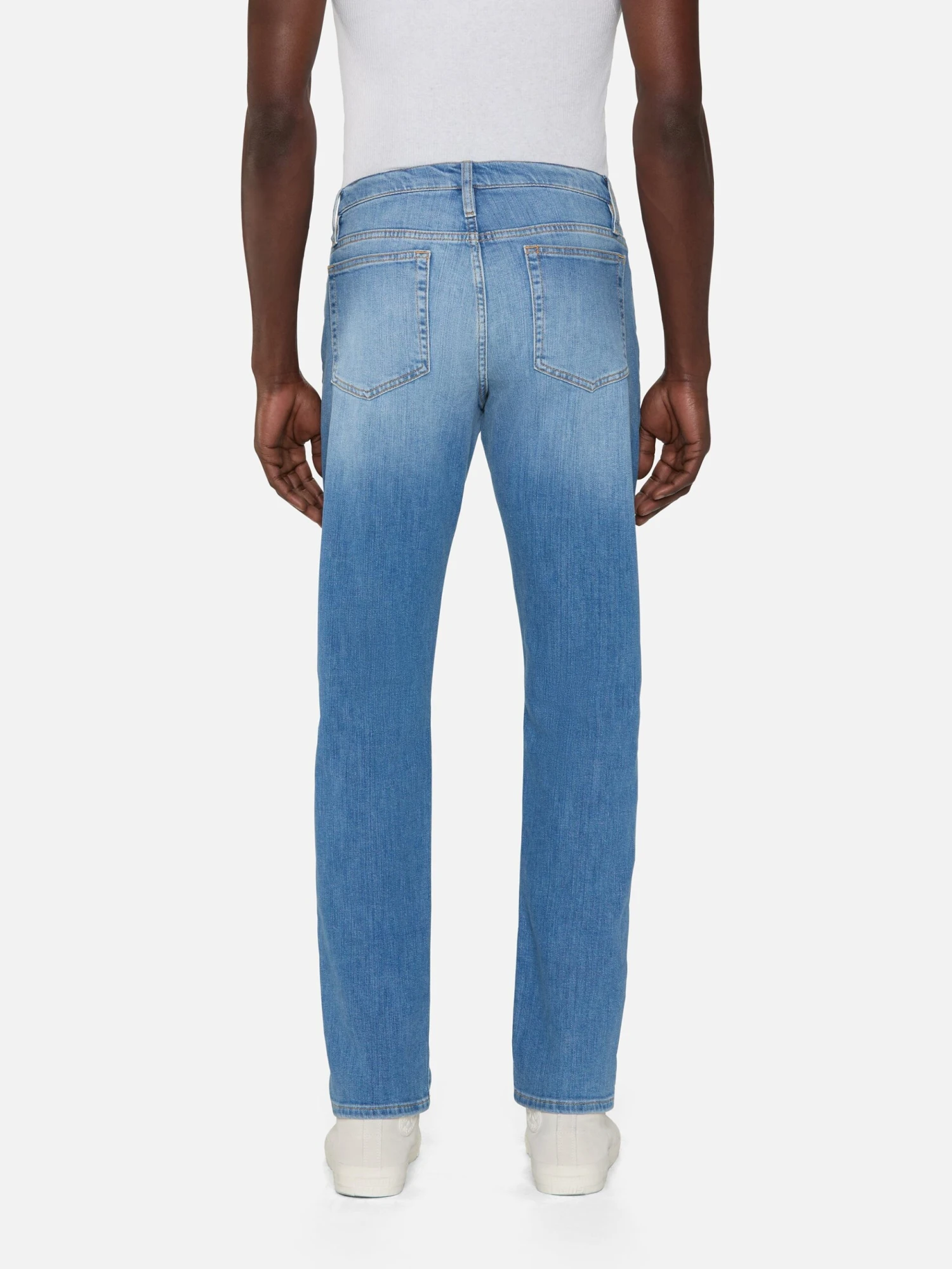 A FRAME signature jean, this style is designed with a classic 5-pocket construction, comfortable mid rise, flattering straight leg, and tapered slim fit at the leg opening. Crafted from smooth, comfort-stretch denim.