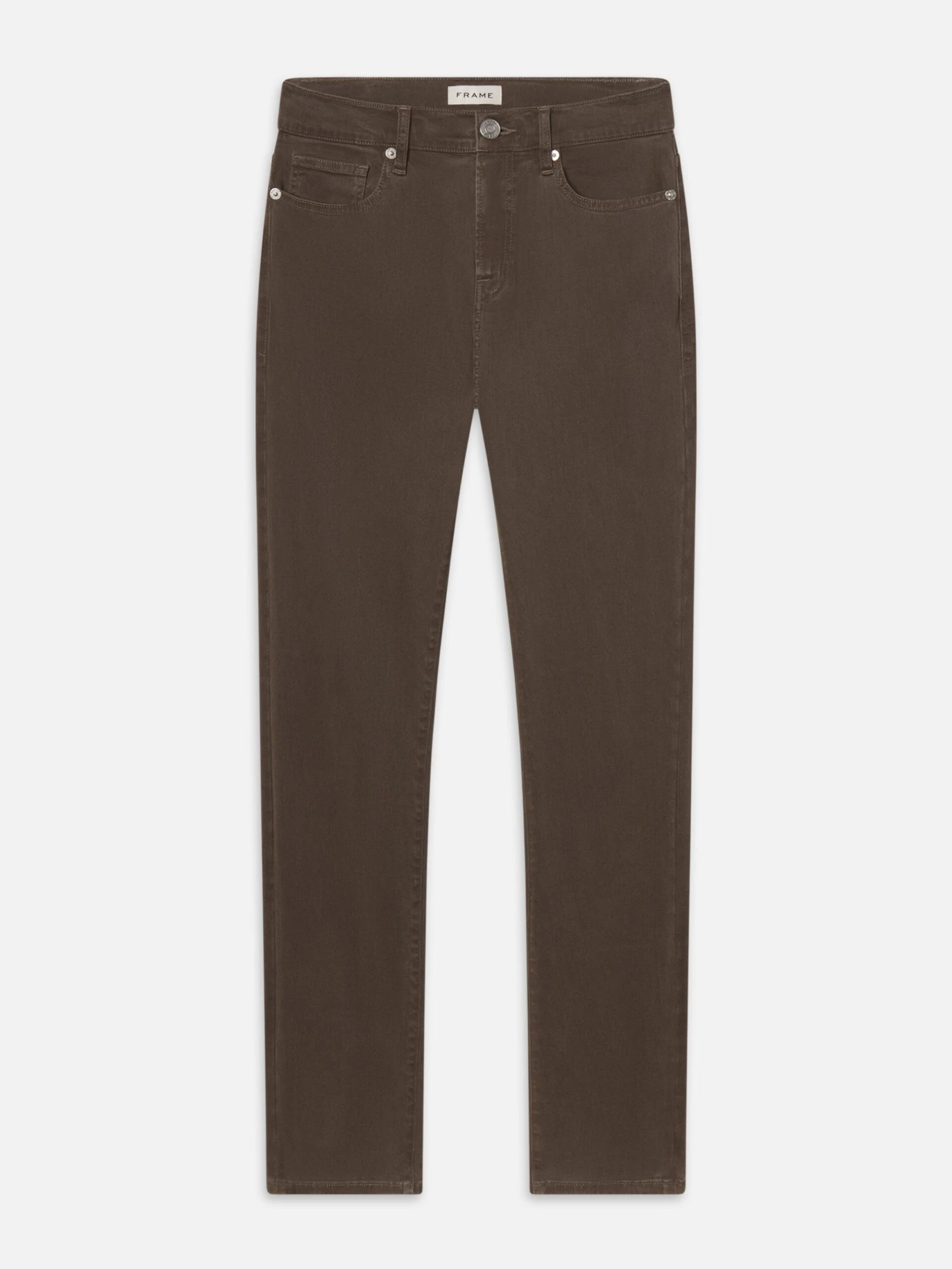 A FRAME signature jean, this style is designed with a classic 5-pocket construction, comfortable mid rise, flattering straight leg, and tapered slim fit at the leg opening. Crafted from smooth Structured Stretch denim.