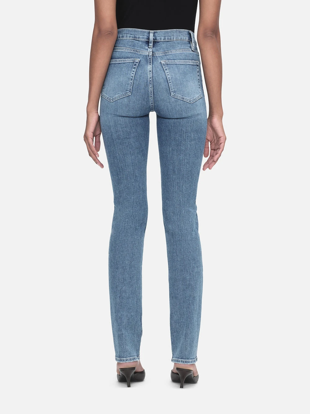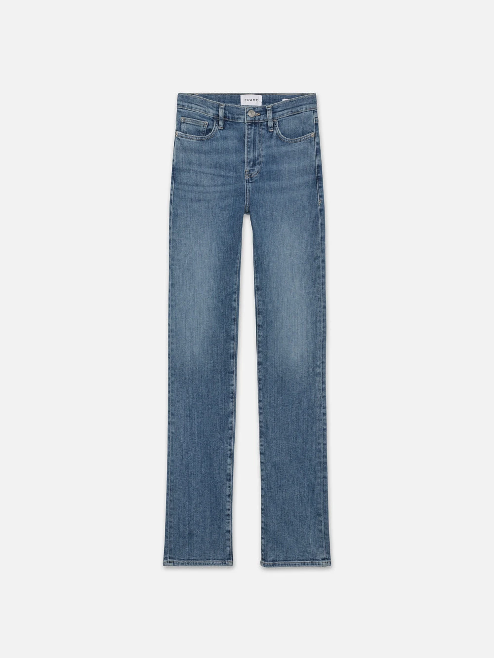 A tailored straight-leg jean, this high-rise pair is designed to be subtly fitted with a nip-in at the knees and a longer 31″ inseam. The medium indigo wash is ideal for warmer weather looks. Crafted from a super-stretch cotton blend for the softest, most comfortable wear.