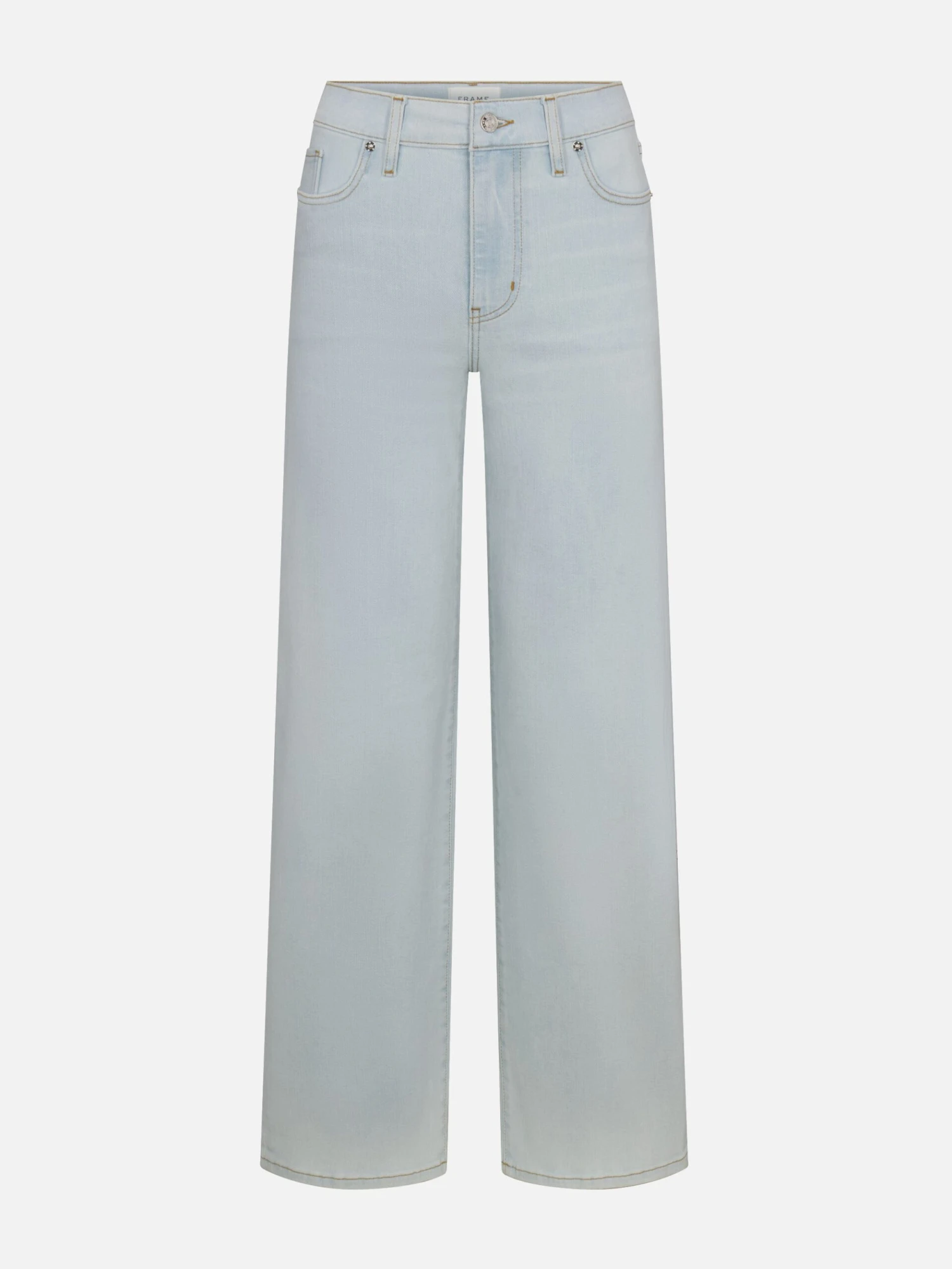 A FRAME introduction to the best-selling palazzo silhouette, this pair is designed with a flattering high rise, fitted hip, and subtle wide-leg flare that hits at the floor. Crafted from a sustainable, ultra-stretch cotton blend in Feather—a soft, ultra-pale baby blue.