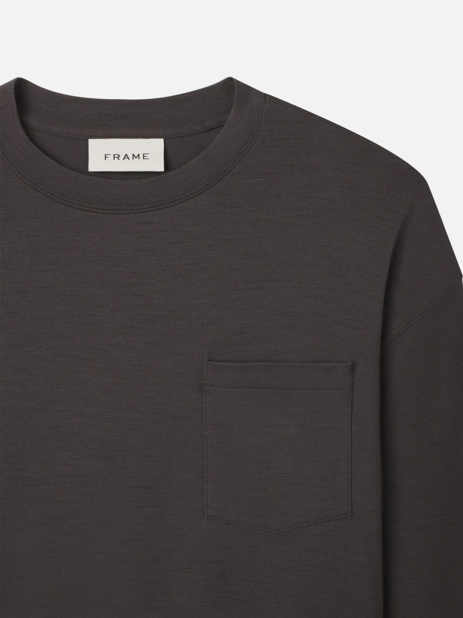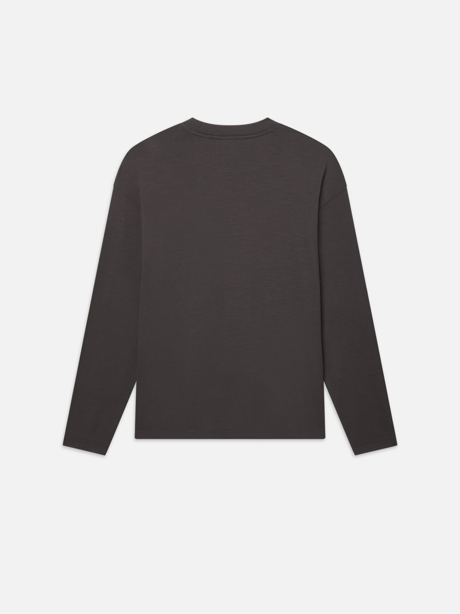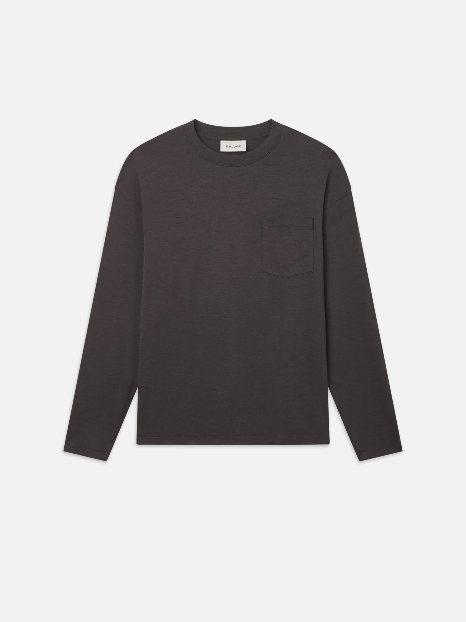 This laid-back tee has a sophisticated feel with 100% wool fabrication. The dropped shoulder design and relaxed long-sleeved fit keep it simple with a crew neckline and single tone-on-tone patch pocket at the chest.