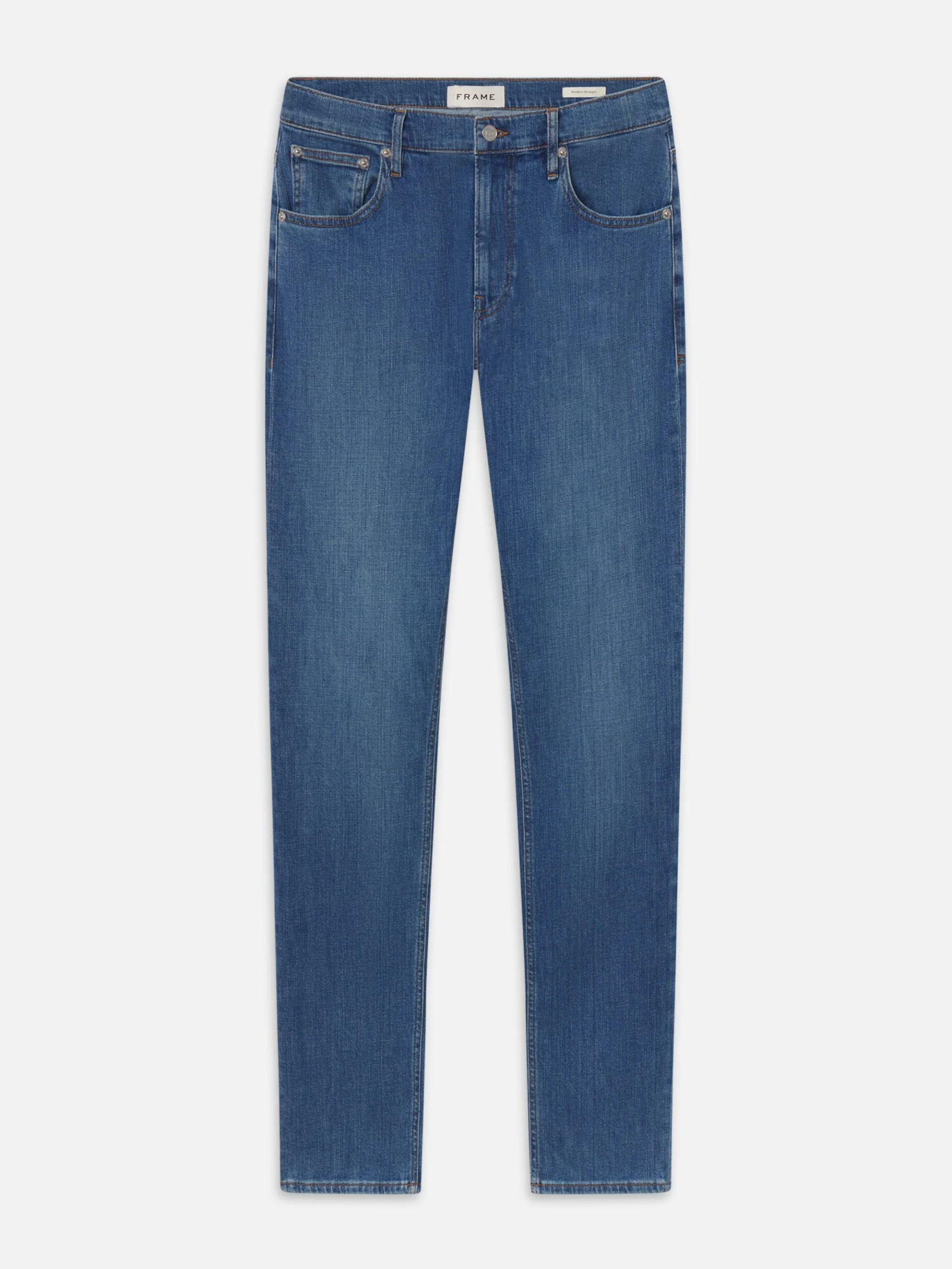 Our mid-rise, straight-leg silhouette is cut from a stretch-cotton denim. This 5-pocket pair easily achieves a smart, casual look in any wash.