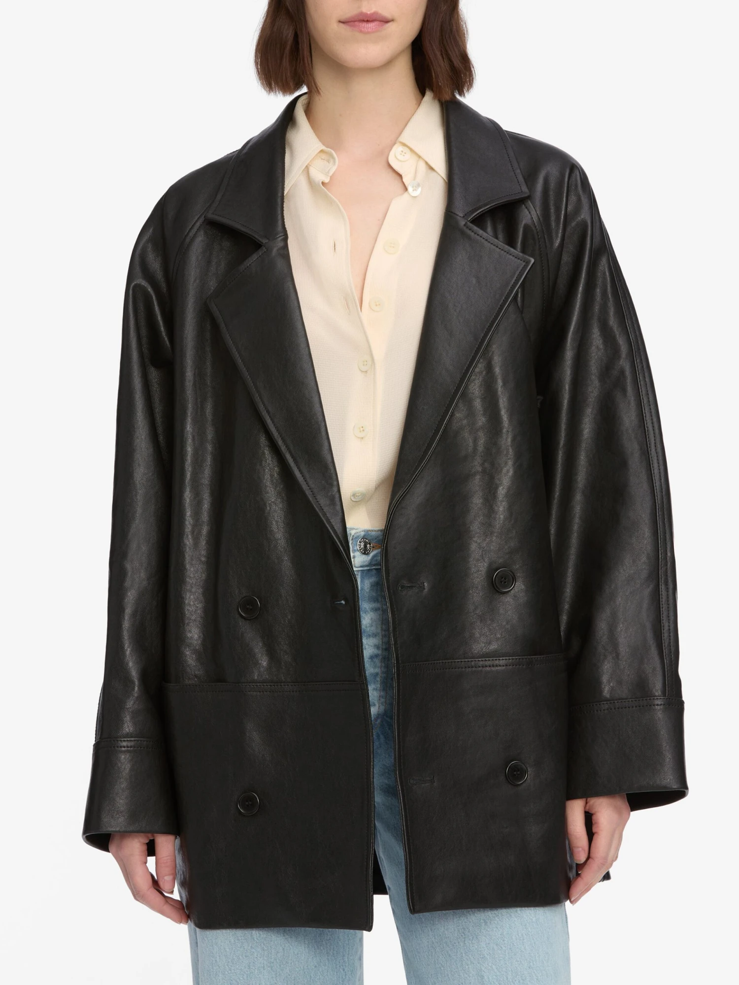 Few things are more chic than an oversized leather jacket. Like the perfect vintage find curated by FRAME for you, this jacket is a dream to style. Front flap pockets, a chest pocket, and extended cuffs complete the double-breasted design.