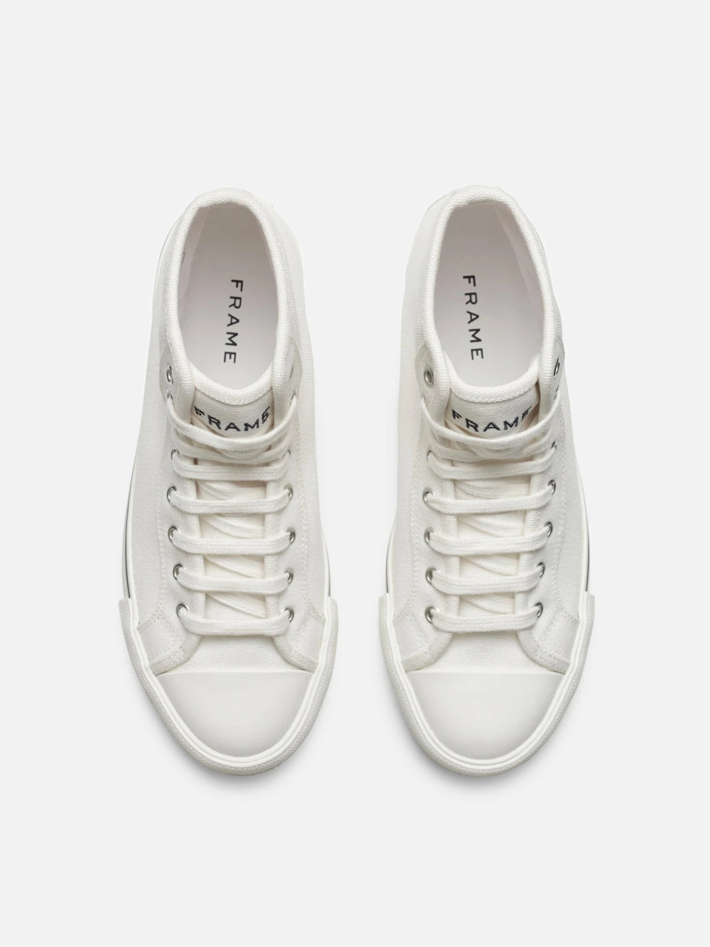 Presented in unisex sizing for les femmes and les hommes, this classic high top sneaker looks as cool styled with a minidress as it does cuffed denim. Crafted from 100% cotton in Blanc, set on a rubber sole and finished with the Ritz Paris logo in Navy. Run, don’t walk.