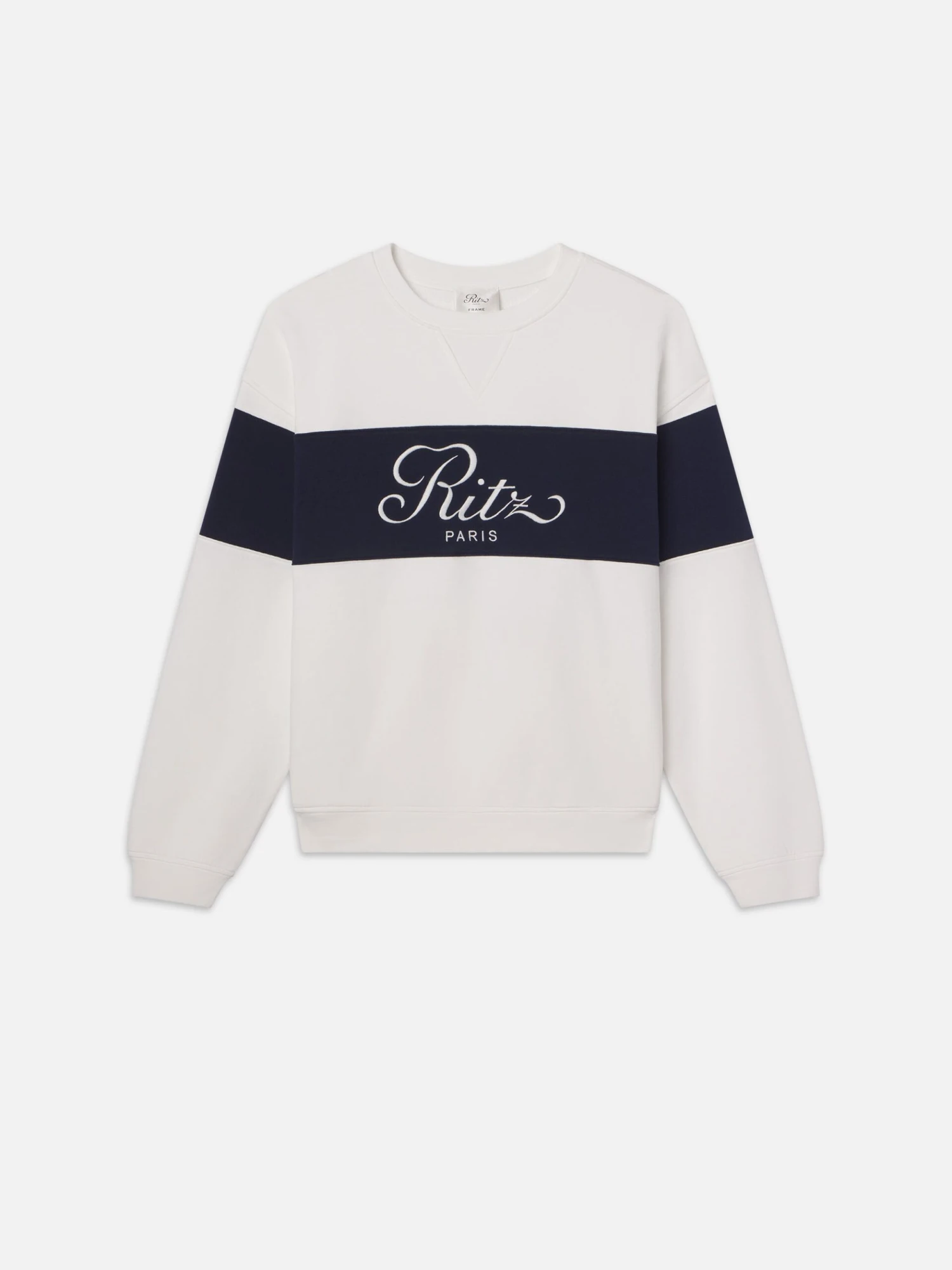 Polished sweatshirts do exist. This sporty style has a solid stripe that runs across the body and sleeves for a consistent look that attests to a luxe, detail-oriented design. With Ritz Paris embroidery and pure cotton construction, this piece is sure to elevate your sweatshirt roster. Featuring side seam pockets for a modern touch.