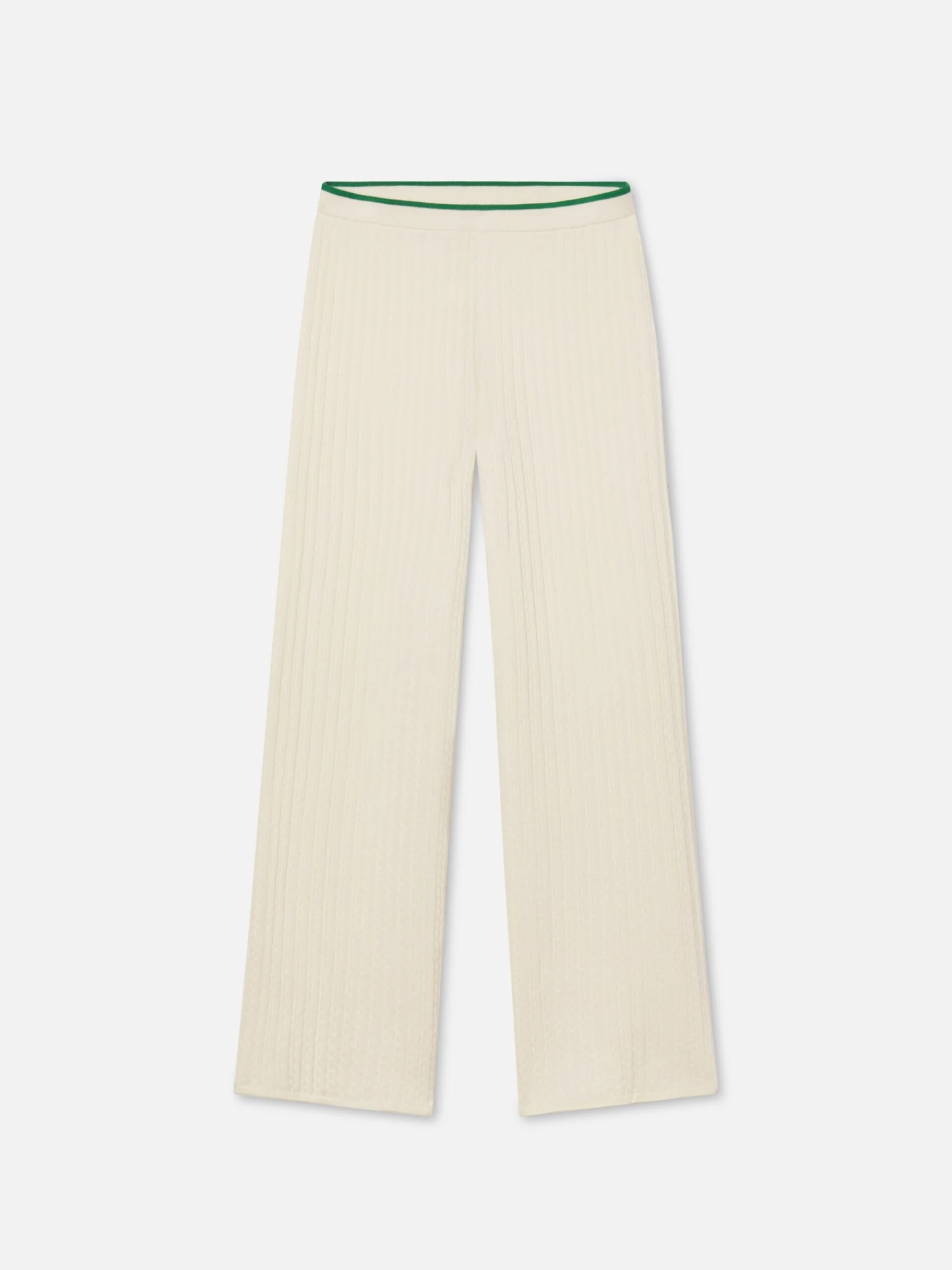 Knit from a soft blend of cashmere and mulberry silk, this pull-on pant features a classic cable texture and elastic waistband. Relaxed but refined—especially when paired with the matching Cable Hoodie. A luxury lounge piece that lives beyond the sofa.