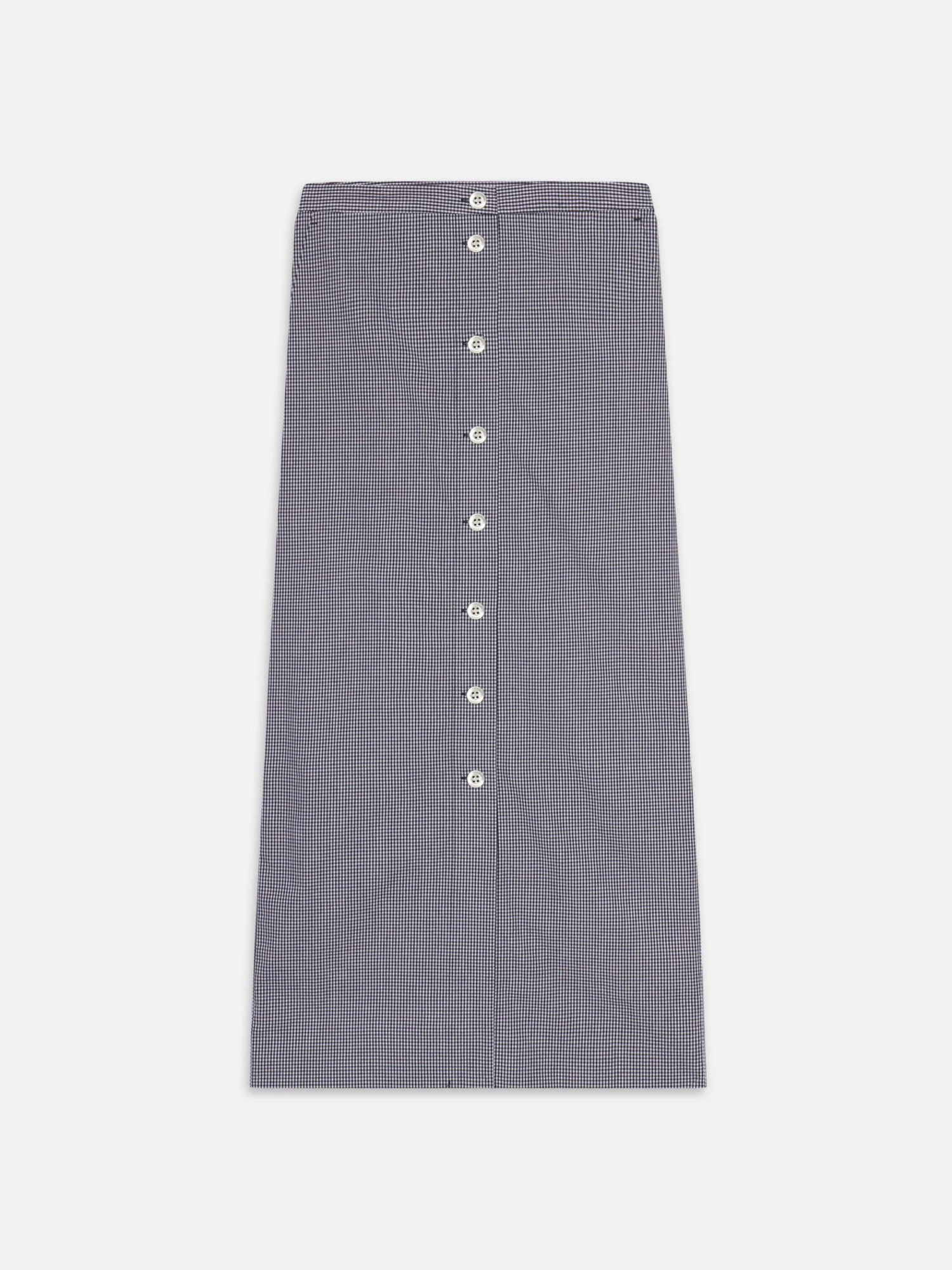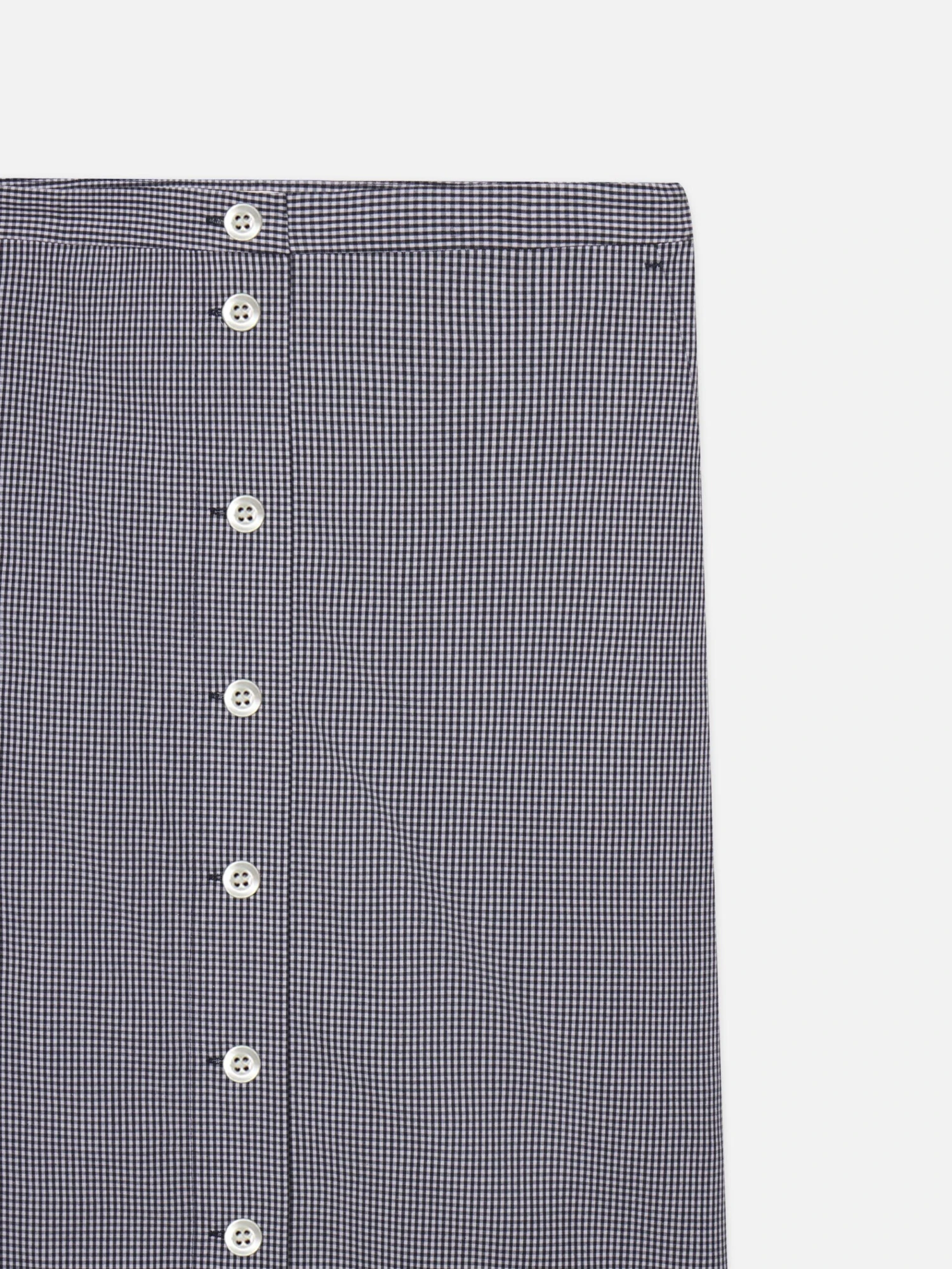 Check, please. This summer skirt has a classic A-line silhouette, covered in navy gingham with white summarys down the front. Lightweight in pure cotton, it’s made to pair with the matching top—or anything in your warm-weather rotation.