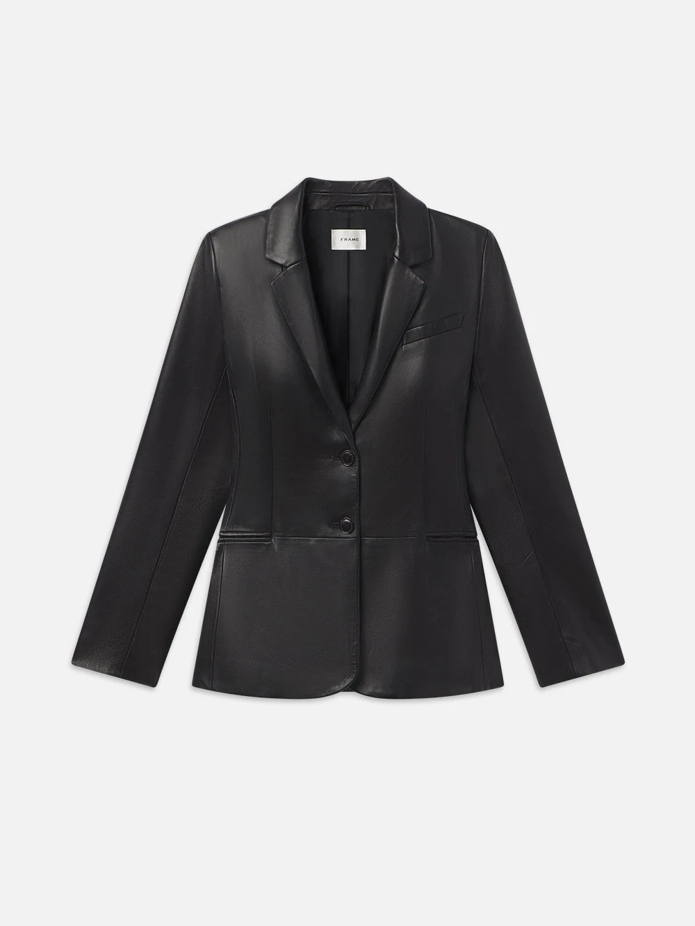 Our bestselling Femme Blazer in supple lambskin leather. Cut to a tailored silhouette, this modern closet essential has a notched lapel, double-summary closure, and slit pockets. Wear it as a blazer with softly structured suiting or more like a leather jacket with your favorite pair of jeans.