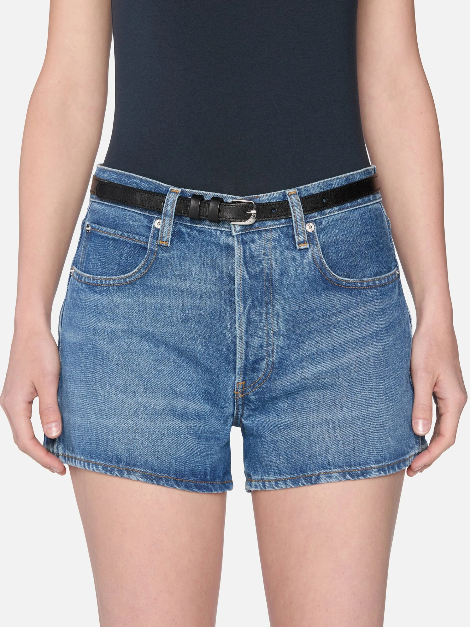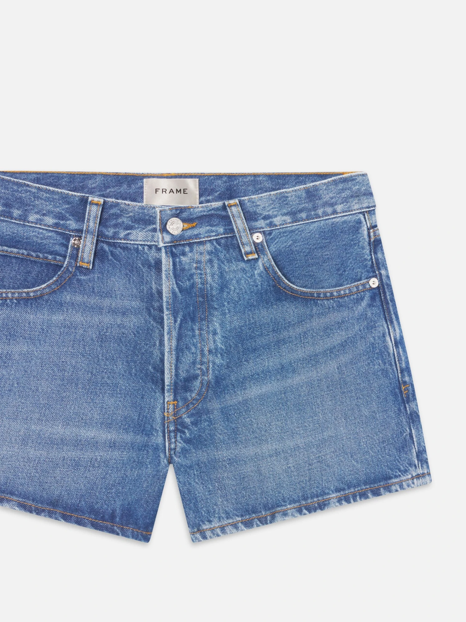 Your new spring staple. This short carries the same easy fit of our bestseller, hanging from a mid-rise waist to a mini hem with the perfect amount of coverage. Flattering and comfortable, this vintage-inspired short has a distressed, pre-loved feel with a medium blue wash.