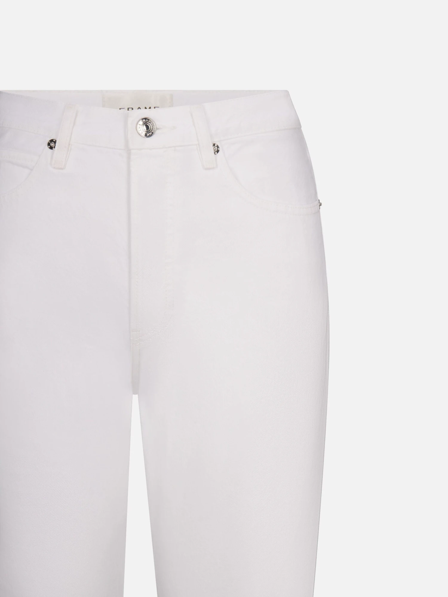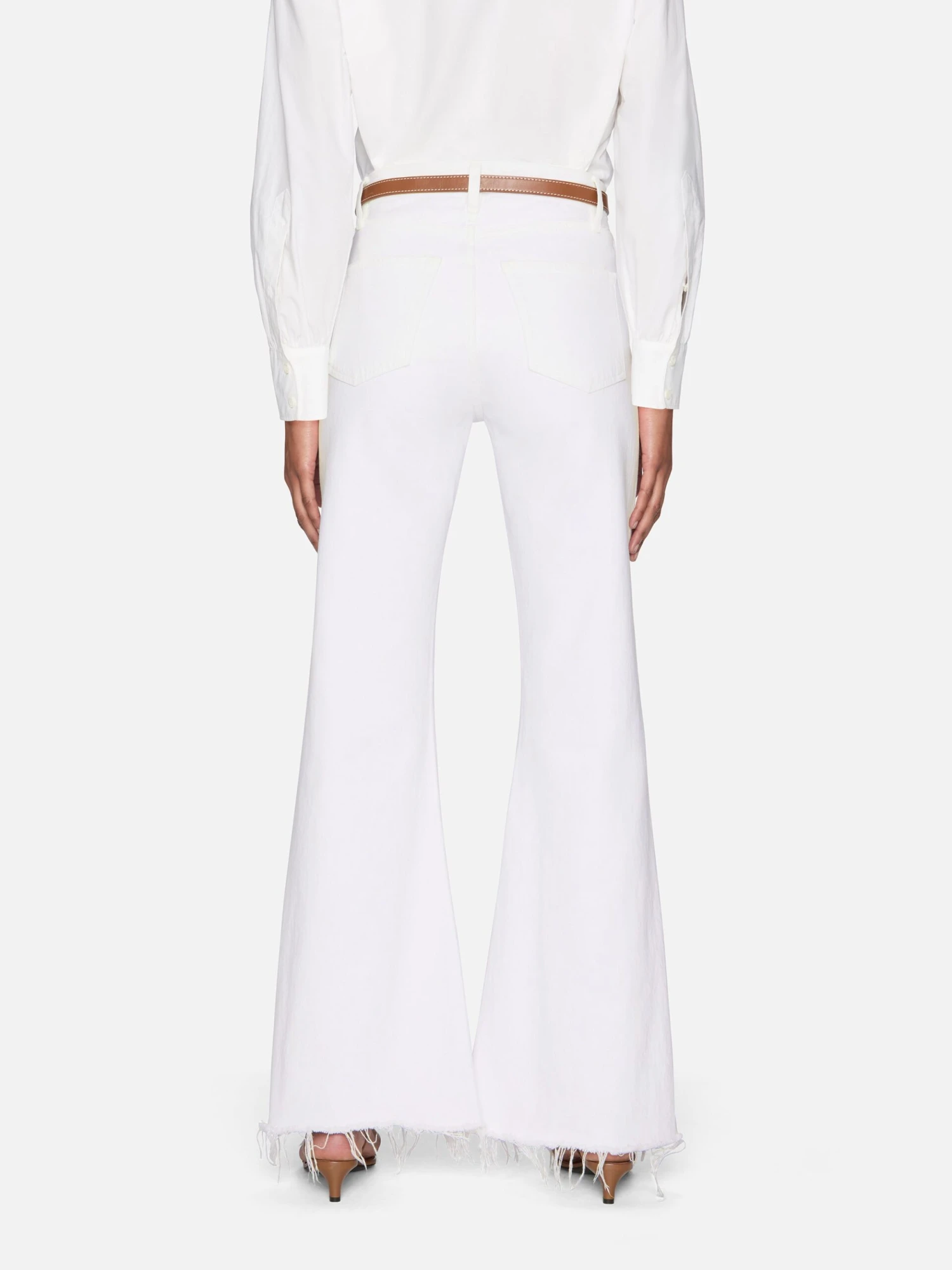 For the laid-back LA girl in us all, this white jean sits just above the hip and breaks into a relaxed, wide-leg flare. The spacious fit is defined by rigid denim for structure and a raw, frayed hem for an authentic vintage feel.