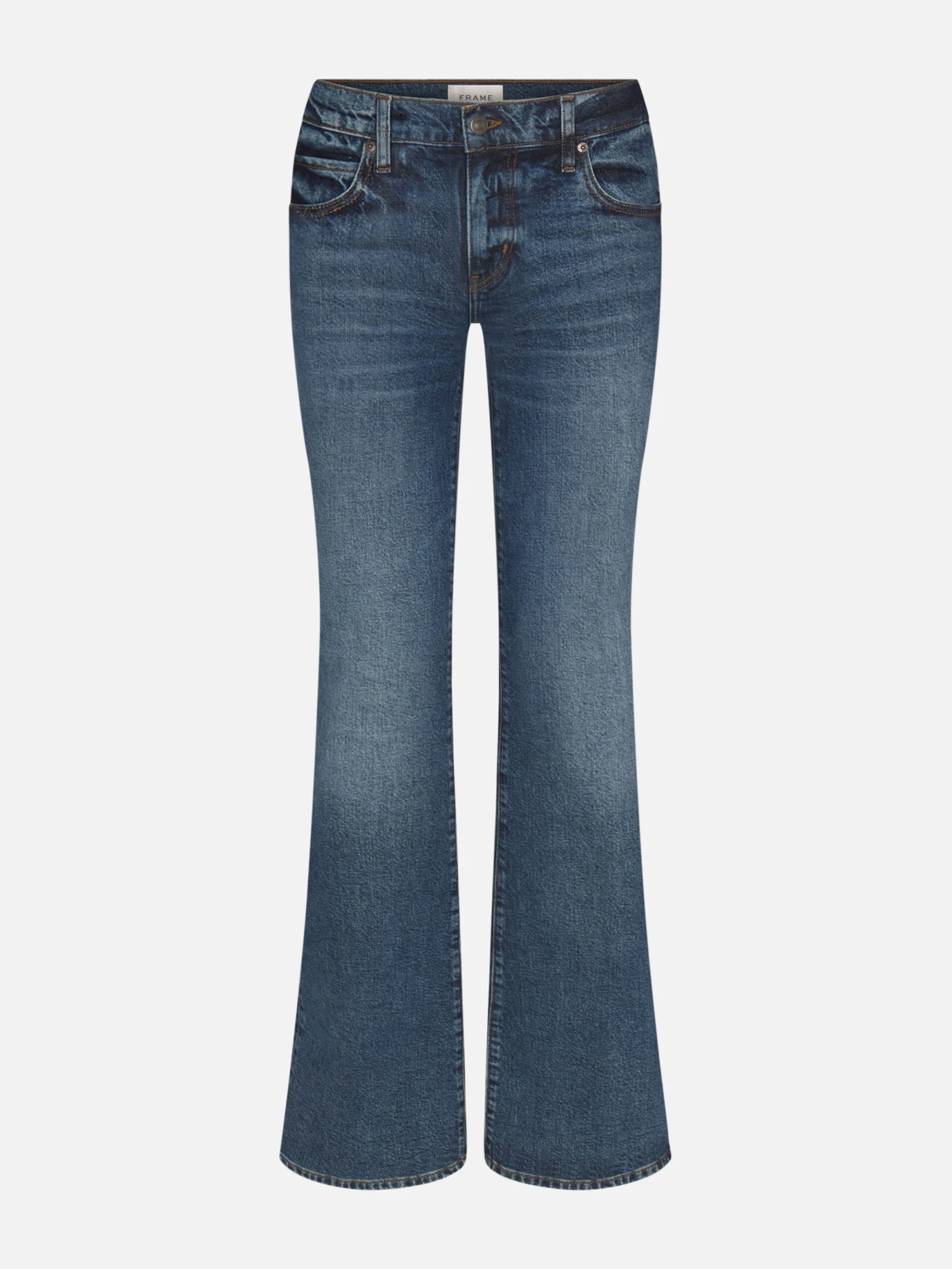 As suited to the runway as it is to the hoedown, this bootcut jean flaunts a true low rise that hugs the hip. If in between sizes, size up.