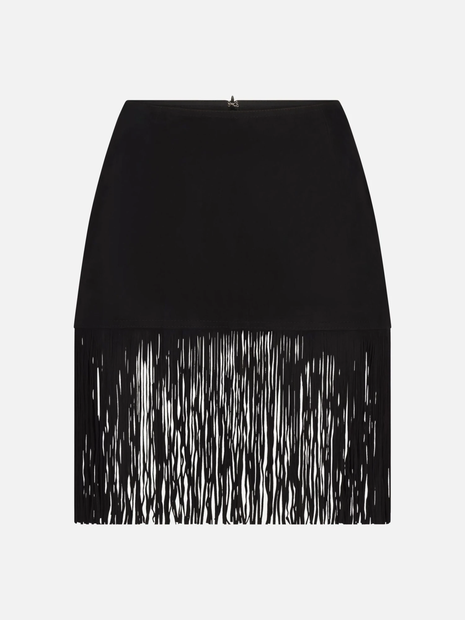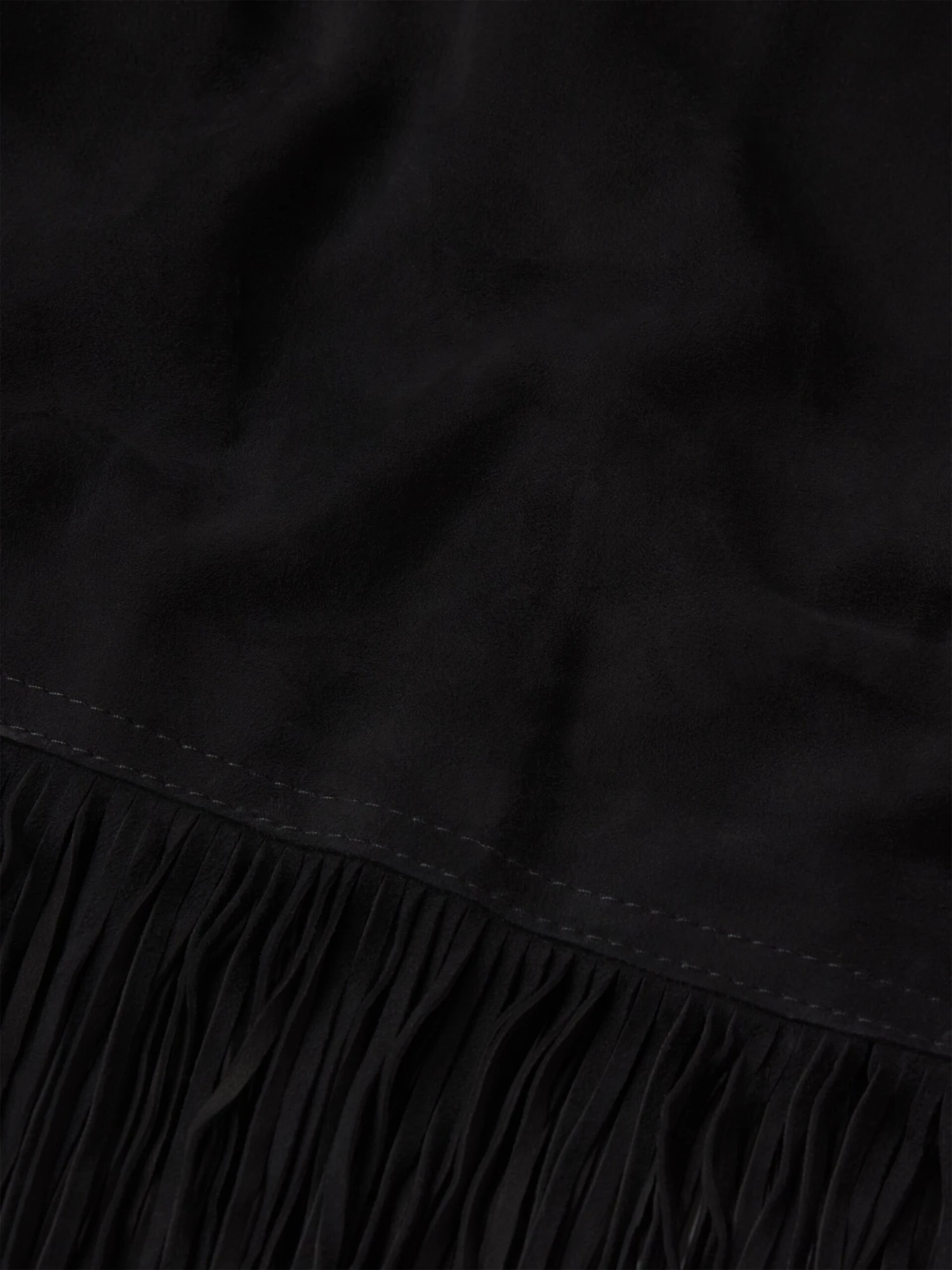 A standout piece in soft suede, finished with fringe details that nod to classic Western styling. Balance it with a cashmere sweater or crisp shirting for a look that’s dramatic yet refined.