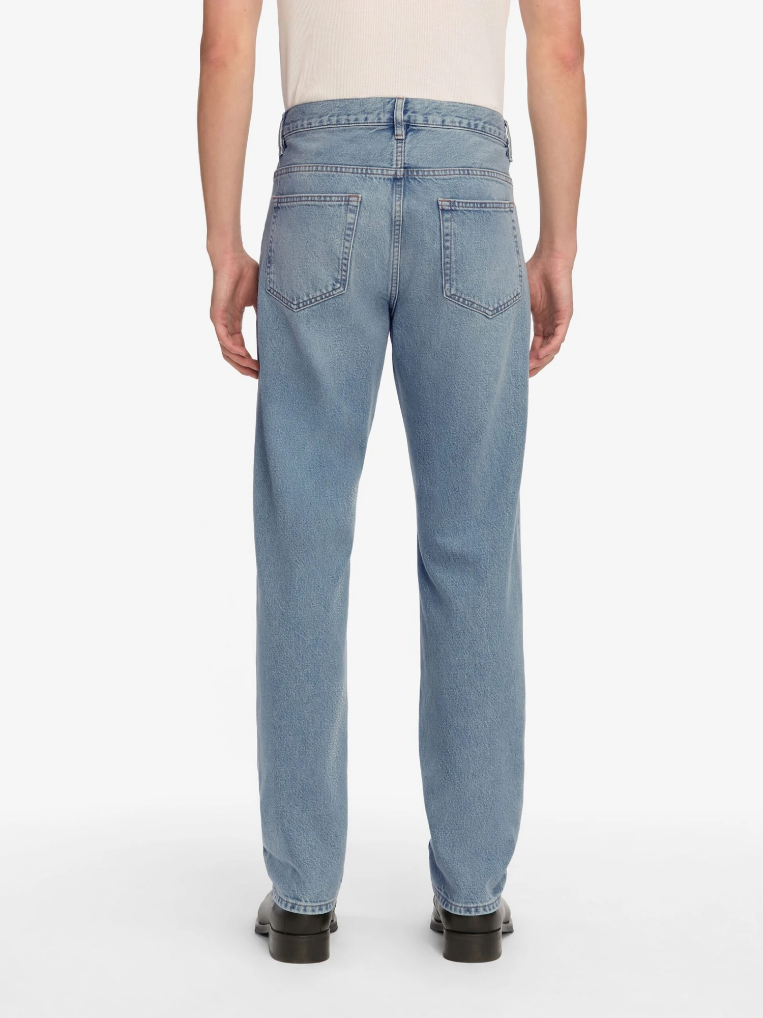 A FRAME favorite with a modern ethos. Designed with a mid-rise fit and a clean, straight-leg silhouette—this summary-fly jean is crafted from sustainable and recycled cotton that lends a classic rigid feel that wears in over time.
