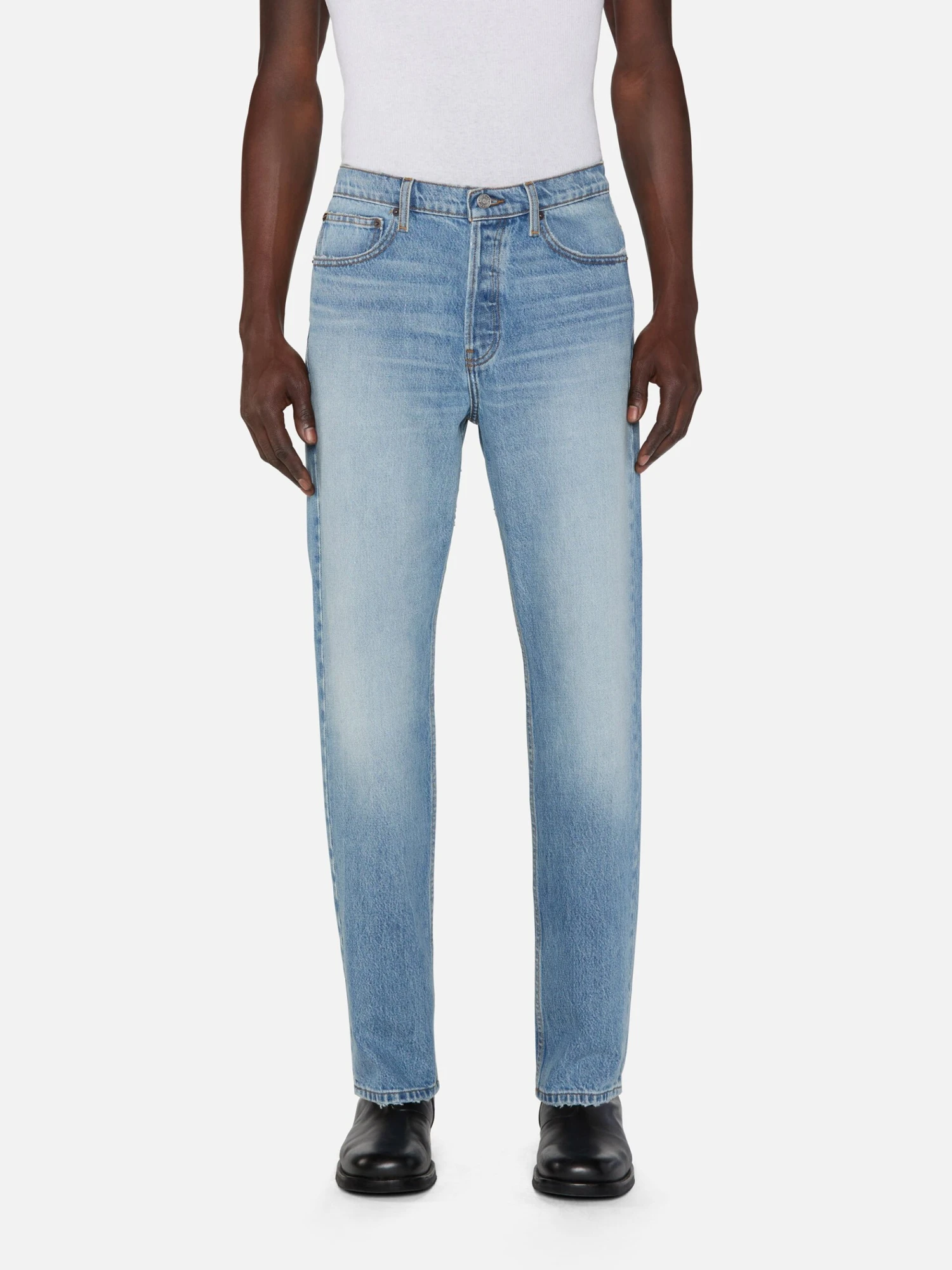 A FRAME favorite with a modern ethos. Designed with a mid-rise fit and a clean, straight-leg silhouette—this summary-fly jean is crafted from sustainable and recycled cotton that lends a classic rigid feel that wears in over time.