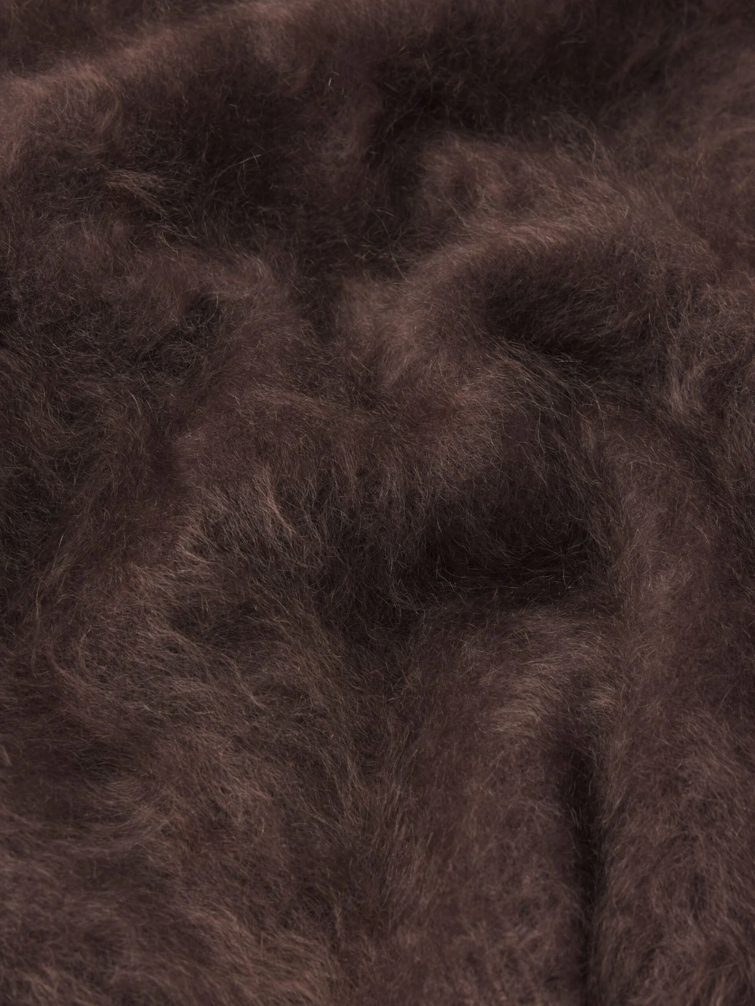 A super cropped turtleneck sweater with the teddy-bear like texture of brushed cashmere. This sophisticated statement top can be worn on its own or with the matching Teddy Cardi.