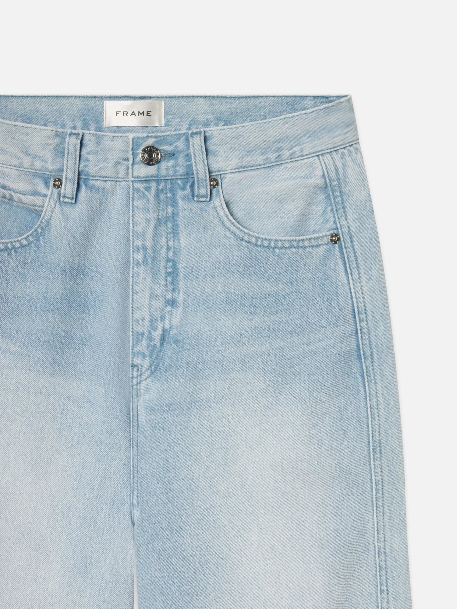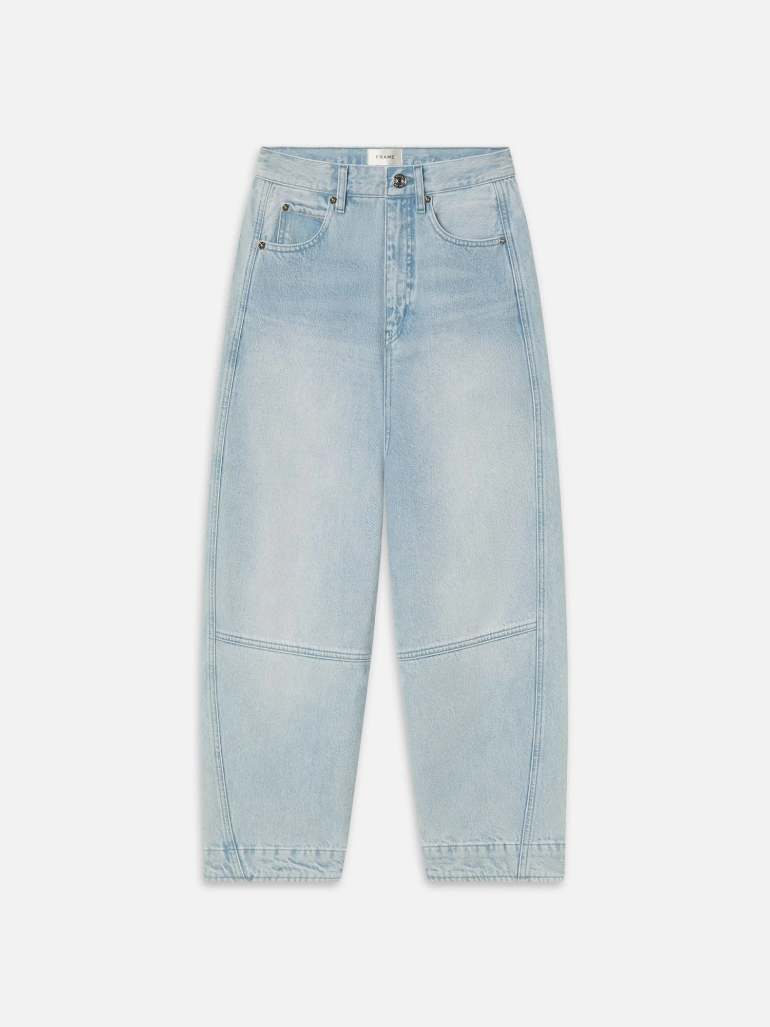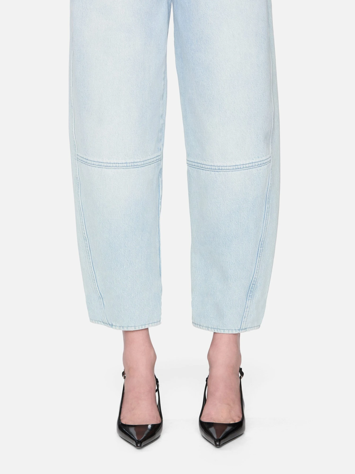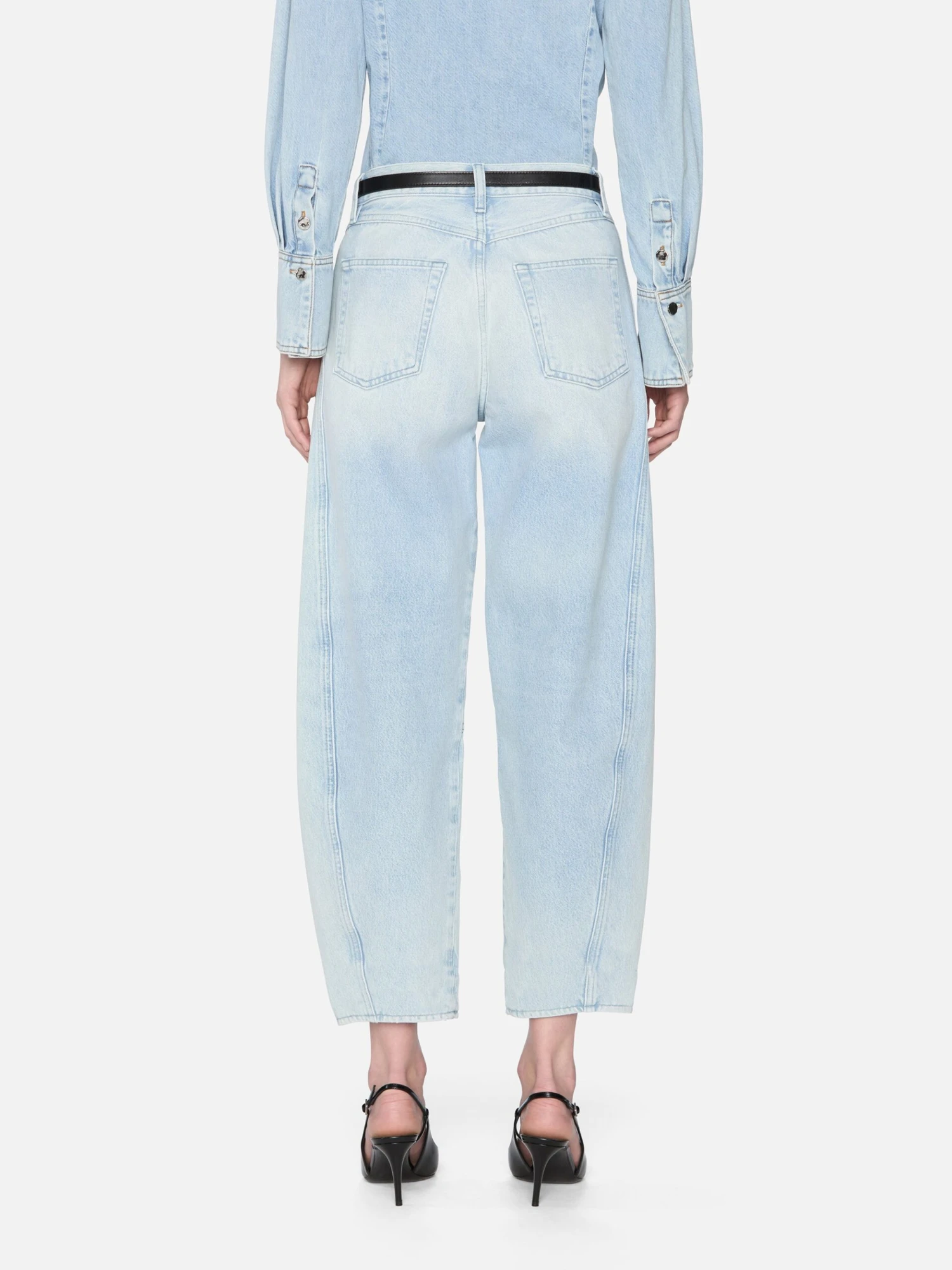 A mid-rise jean with an artful curve. The Twisted in light blue features a sculpted outseam, utility-inspired knee seaming, and an ankle-length inseam. Crafted from 100% regenerative cotton that wears in with time and character.